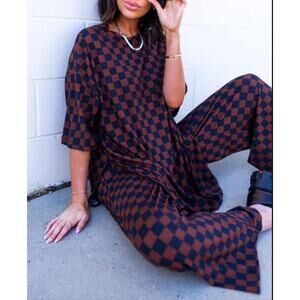 Dressed in Lala Lex Ribbed Oversized T-Shirt & High Waist Crop Pants Set Size Sm