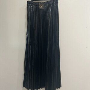Dressed in Lala Metallic Pleated Midi Skirt in Midnight Black