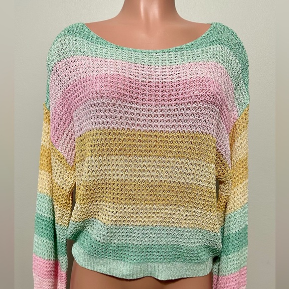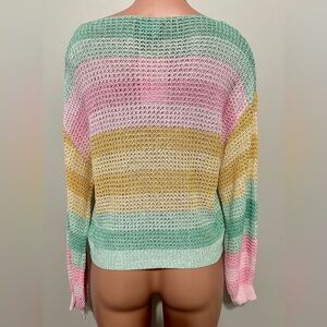 Stay cozy and stylish with this striped multicolor sweater. Featuring a blend of pastel shades, it's perfect for any casual outing.