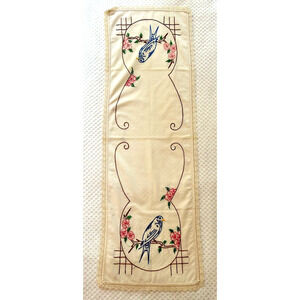 Dresser Scarf Table Runner Parrot Bird Vintage Linen Handmade Needlepoint 42x14"