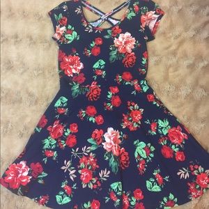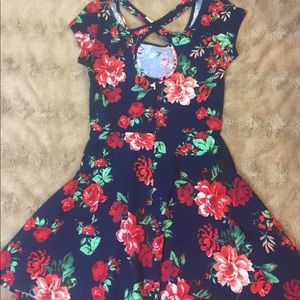 The rose pattern dress is cotton material and beautiful! Love it so much but too short and haven’t gotten myself to just wear it. Never been worn, just tried on and bought it.