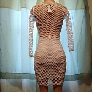 Summer Long sleeve white see-thru fishnet midi dress( mid thigh in length) with white shell under lining at bottom of dress. Great for girls night out for happy hour or a white all affair, you can always put a white sheer camisole tank top under the top part of the dress. Also great for just partying at the club. You choose!! 3 sizes (S,M,L)