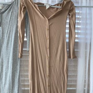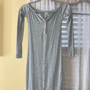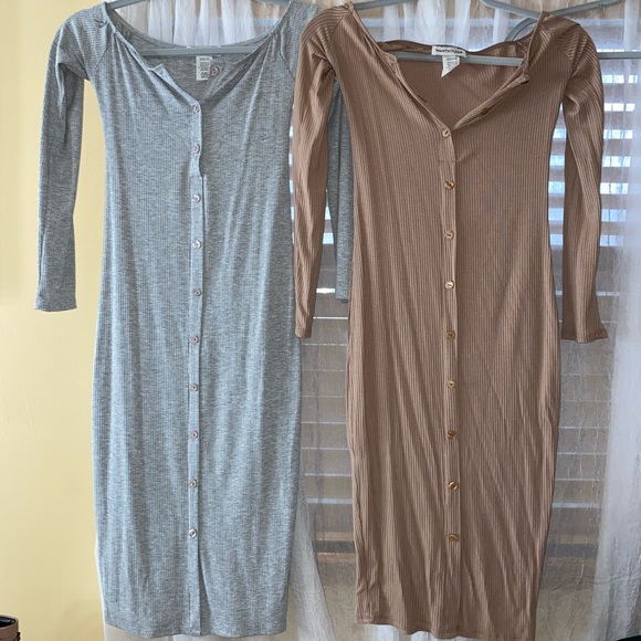 Grey and tan button up casual midi dress