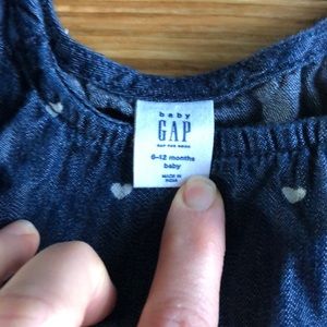VGUC. Heart dress is baby gap 6-12 mo. Dot dress is Nordstrom baby and has matching diaper cover (6 months). . Dot dress does have small hole inside by tag. It was where sensor was attached. Does not affect wear and can’t see once on (does not go thru fabric in back).