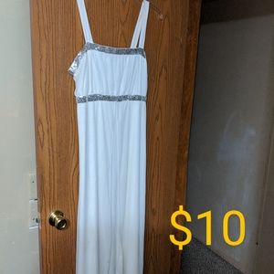 White dress has couple stains might can get out if dry cleaned (size 16)