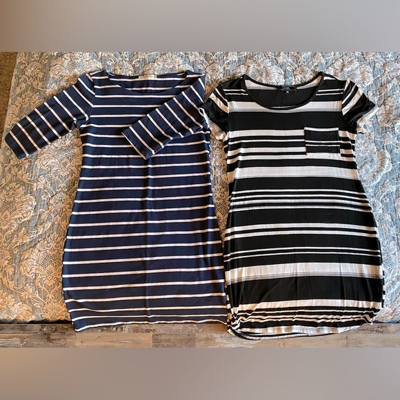 2 Dresses- both size Medium- NWOT - dress on the left is navy blue striped- dress on the right is black and cream striped