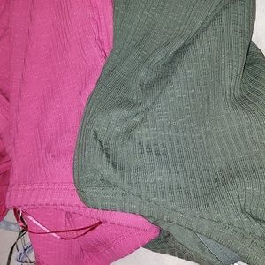 2 dresses coral n army green. built in bra 41 inch long bust 22 inches only coral has tag. both never worn