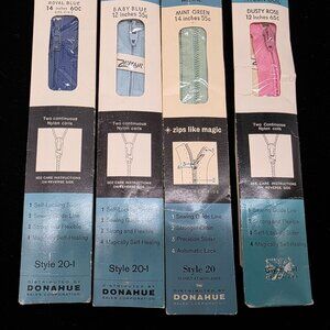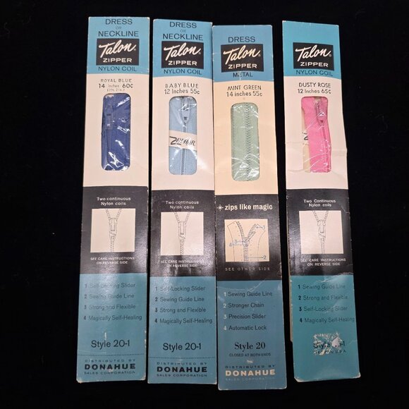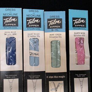 Dresses Or Necklines Talon Nylon Coil Zippers Pink Blue Green 12" & 14"