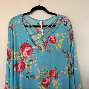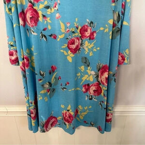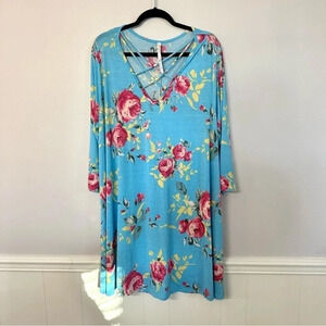 Dressin Gaudy Women's 3/4 Sleeve V-Neck Blue Floral Dress Size 3XL GUC