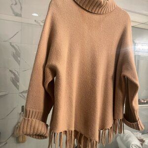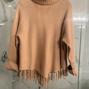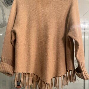 Beautiful camel coloured sweater with fringe on the bottom wool and angora mix size large