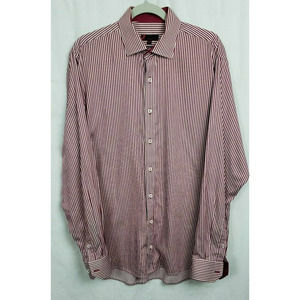 Dressmann.com Mens Button Down Shirt Long Sleeves Sz 43/44 XL Red/White Stripe