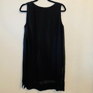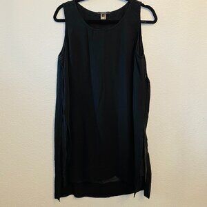 Dressori Black 100% Silk Side Slit Lined High Low Sheath Dress | Large