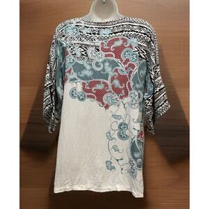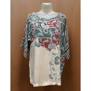 Dressori Multi Color Kimono Sleeve 100% silk Print Blouse Top Size Small