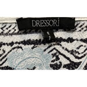 This is a beautiful Dressori blouse for women in size Small. It features a colorful multi-color print and is made of 100% silk, giving it a luxurious feel. The blouse has kimono sleeves, adding a stylish and trendy touch to the design. Perfect for adding a pop of color to any outfit, this top is a versatile addition to any wardrobe for those who appreciate high-quality materials and unique patterns.