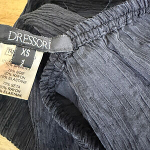 Dressori Pants Womens XS Black Pull On Crinkle Silk Blend Elastic Textured 25.5"