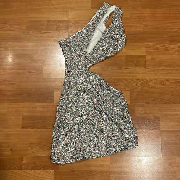 Medium, Silver, Sequin, Dressmezee, SHOOTING STAR CUT OUT SEQUIN DRESS, Worn Once