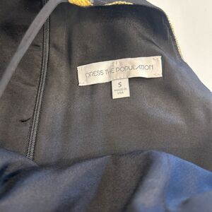 Sleek black satin dress by Dress the Population. Ideal for elegant events.