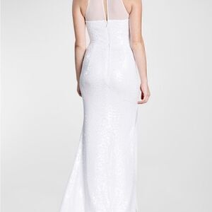 $448 M IISD This sweeping gown captures the light thanks to allover sequins so you sparkle with each step you take. 61 1/4" length (size M ) Halter neck Lined 95% polyester, 5% spandex Hand wash, dry flat Imported