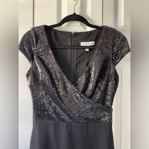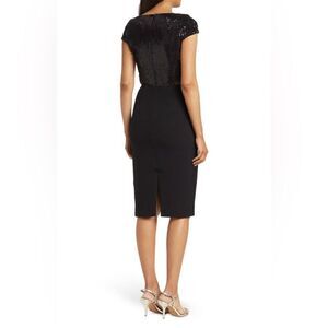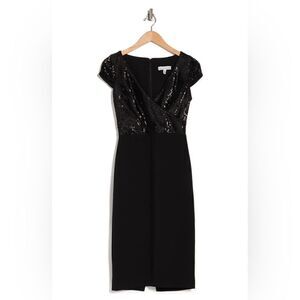 Dress the Population Sequin Surplice Cap Sleeve Sheath Dress - Black