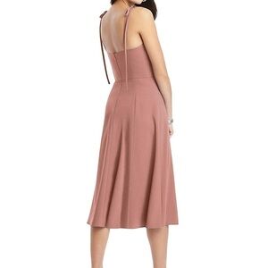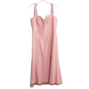 Brand new Dress Collection Bustier Crepe Midi Dress with Adjustable Bow Straps. Color is Desert Rose pink. Midi length crepe bustier dress with adjustable bow straps and fit and flared skirt.