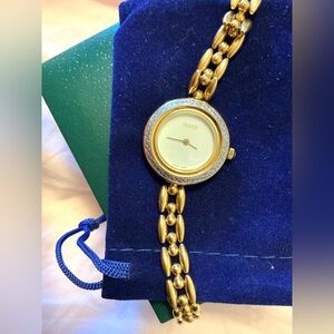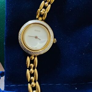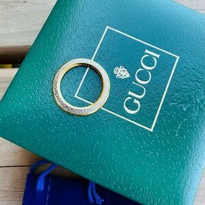 Exclusively DRESSY GOLD TONE ring with “ diamond cut” silver bezel for Gucci interchangeable bezel watch (1100 and 11/12.2) models. Not suitable for Gucci bangle “ made in Italy” model. I also have one like this in navy/silver and red/ silver.