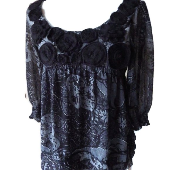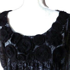 Dressy Layered Top by ICE/ Size S/ Black Rosettes/ Boho