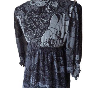 I C E Layered Top Blouse Dressy Black Gray Floral Boho Hippie Size SMALL