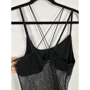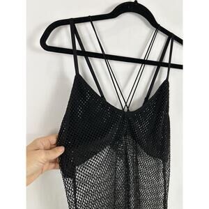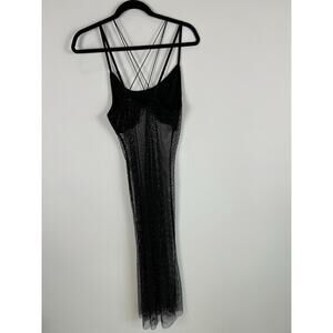 Dressy Mesh Midi Dress Goth Emo Size M/L Fishnet Women's Black Beaded Sequin Bra