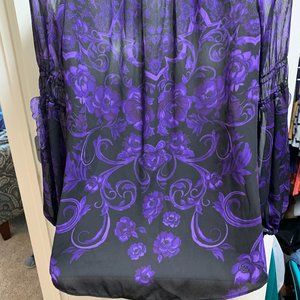 Lovely floaty top with sheer sleeves and tie neck detail. Machine washable