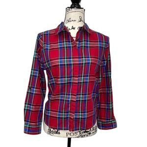 Dressy Plaid Button Up Size 10 Petite Blouse