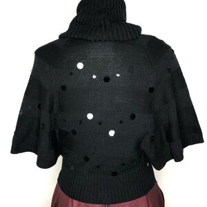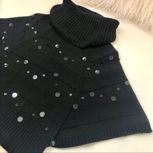 Dressy Sweater Cowl Neck Cropped Paillettes Holiday Evening Black Medium M