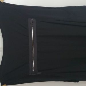 This beautiful top was purchased in a boutique. It has never been worn. It is perfect with jeans or for an elegant affair! There is a beautiful rhinestone detailed zipper on the back. It fits larger than expected.