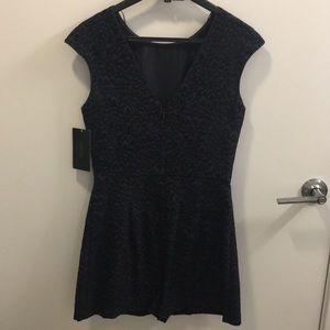 Black and blue dressy Zara romper, skirt in front and shorts in back. Beautiful attached necklace detail. Never worn.