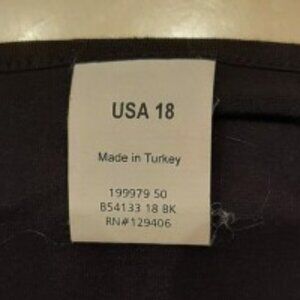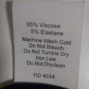 Blouse is jet black, silky and on the dressy side. it has 3/4 length sleeves with a scoop neckline. the neckline bunches. Machine wash with no maintenance if hung to dry.