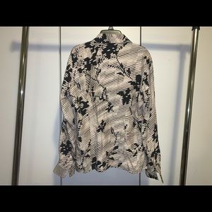 100% silk Has one little brown spot next to a button