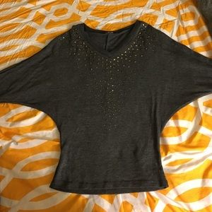 Charcoal gray sweater with black rhinestones. Very comfy and fitting. Not Alex and Ani brand brand - just for exposure.