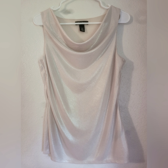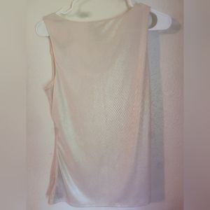 Like New, stretch material, sleeveless, lose round scoop neck. Color is white,cream with shimmer.