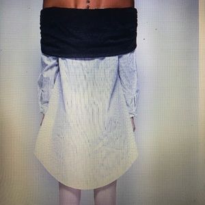 Dressy/Casual Dress/Off the Shoulder/White w/ Grey