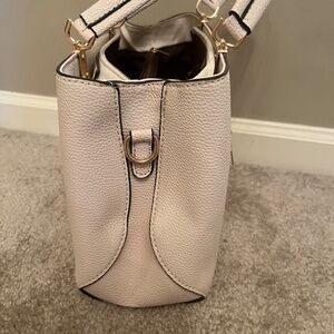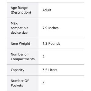 From Amazon. NEVER BEEN USED. Faux leather. Lining polyester. 7 sections, 1 handle, 1 crossbody/shoulder strap, 3 pockets, with zippers, 2 open pockets, 2 free compartments.