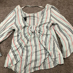 Drew Anthro Striped linen blend blouse NWT Size Medium