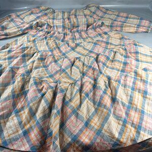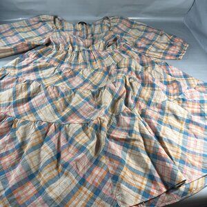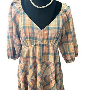 Drew Anthropologie Babydoll Dress Women Prairie Windowpane Plaid Cottagecore