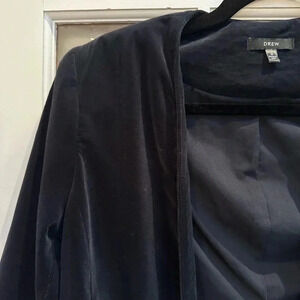 Drew Anthropologie Navy Velvet Bell Flutter Sleeves Open Front Blazer Size Small