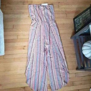 New With Tags Drew Anthropologie striped linen blend strapless bohemian jumpsuit size medium. Features a wide, split leg design. Perfect for vacation or looking cute for running errands! Feel free to message me with any other questions 🙂