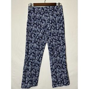 Drew Anthropologie Women's Isabelle Capri Pants Blue Floral Stretch Size 8. Flat front and in excellent pre-owned condition, no rips, tears, snags, pulls or stains.