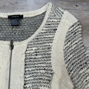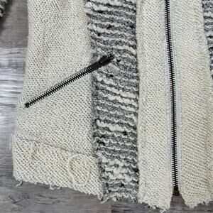 Drew Bouclé Knit Moto Cardigan Cream Gray Textured Zipper Jacket Small