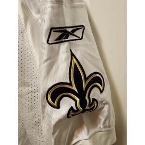 The Drew Brees #9 New Orleans Saints White Jersey is a authentic, officially licensed NFL fan apparel designed by Reebok. This men's XXL jersey features a patch from the National Football League (NFL) representing the New Orleans Saints. Perfect for football enthusiasts looking to show their support for both the team and player in style. Made in Vietnam, this jersey is a must-have for any fan of the sport and the legendary quarterback.