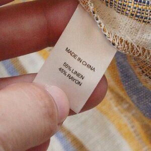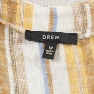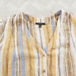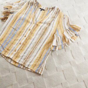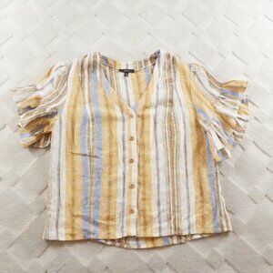 Drew Flutter Sleeve Button Up Top Womens Medium Linen Blend Striped Multi Color
