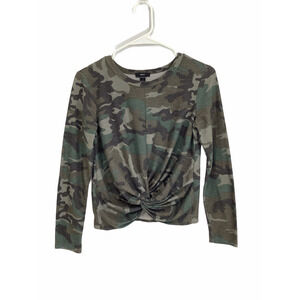 Drew Green Brown Camo Camoflauge Knot Waist Long Sleeve Top Women’s Size Small