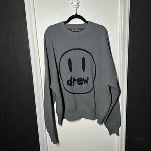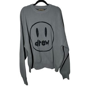 Drew House Men's Gray Painted Mascot Crewneck Sweater Size XXL Smiley Face