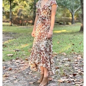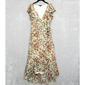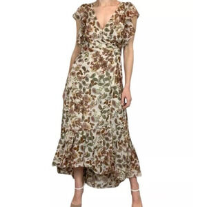 Drew Maxi Dress Terra Vintage Garden Floral Paisley Ruffle Brown Tan Size M